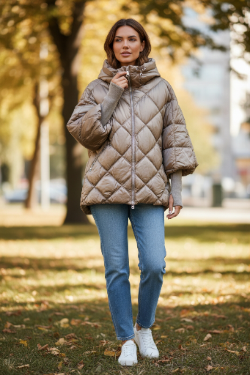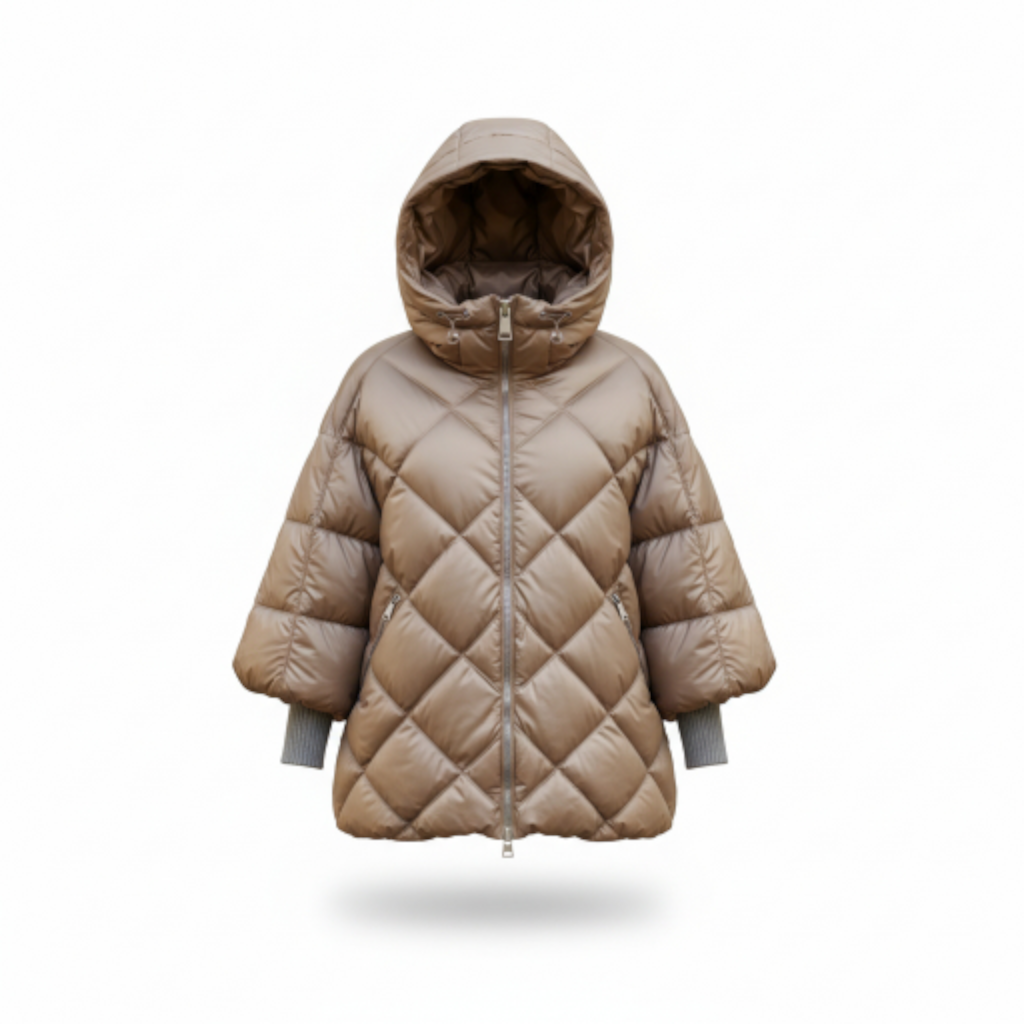 Doudoune matelassée à capuche, manches mitaines intégrées, coupe confortable et chaude, idéal pour l’hiver.