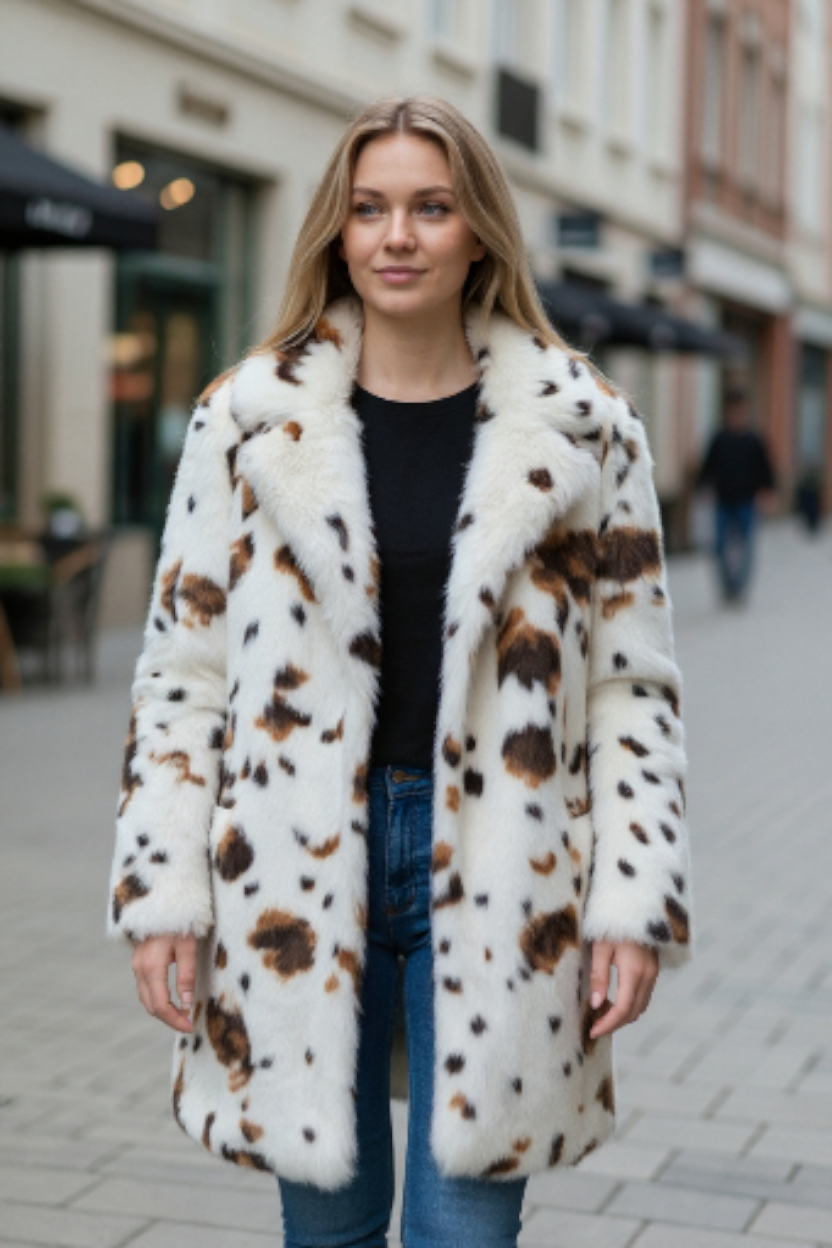 Ce manteau en fausse fourrure imprimé léopard incarne la sophistication et la confiance. Une pièce luxueuse pour un look audacieux et raffiné.