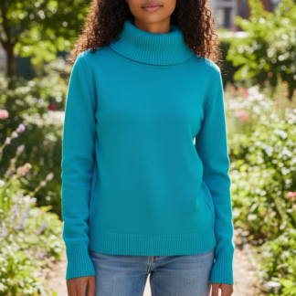 PULL COL BOULE TURQUOISE