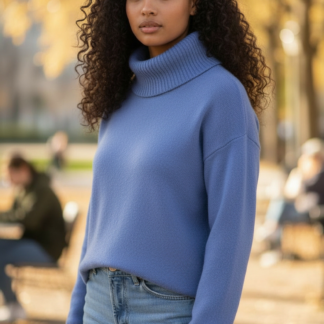 PULL EN MAILLE COTELE BLEU