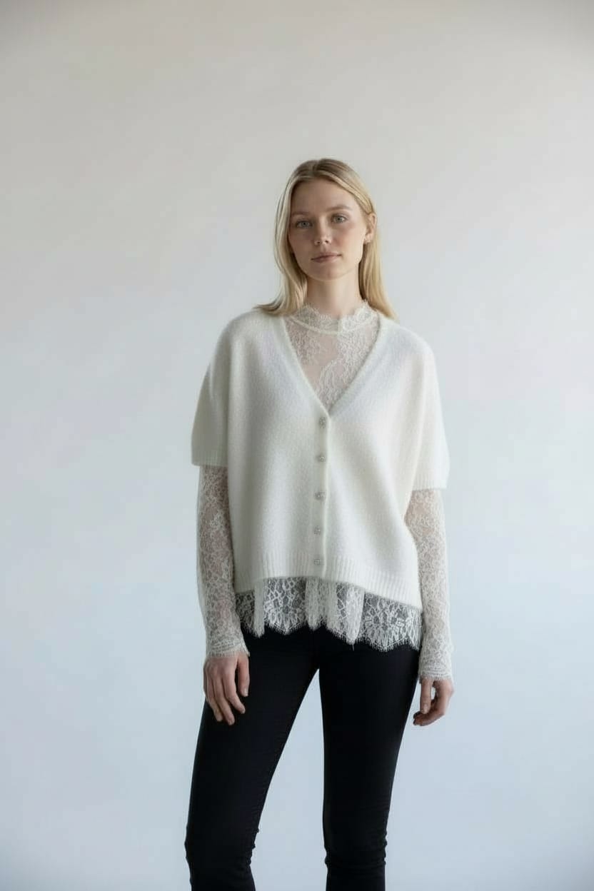 Parce qu’il est à la fois doux, chaud et ultra facile à styliser. Sa coupe sans manches donne une silhouette moderne, et son coloris écru apporte immédiatement une touche chic. C’est la pièce parfaite pour un look superposé tendance, tout en restant confortable et élégante.