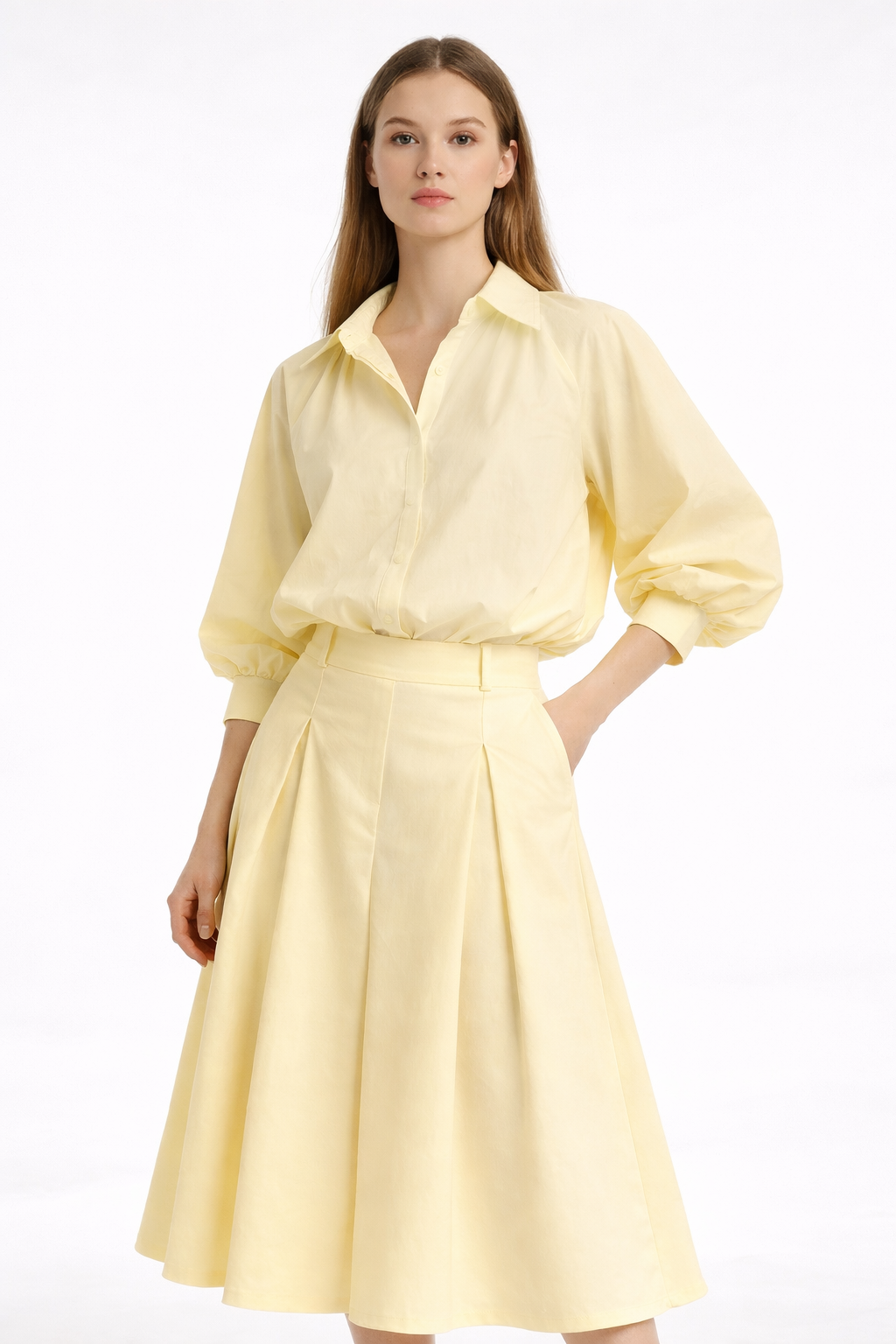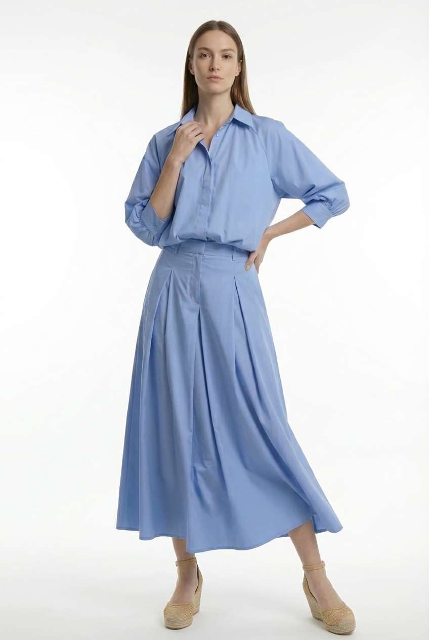 Fabriquée en coton 100% naturel, cette chemise offre un confort exceptionnel et une excellente respirabilité. Douce au toucher, elle est idéale pour un usage quotidien, quelle que soit la saison. Sa longueur a été soigneusement étudiée pour couvrir le haut de la jupe, créant un joli volume sans dévoiler les finitions, pour un rendu parfaitement net.