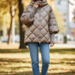 Doudoune matelassée longue à capuche – Manches mitaines- Beige