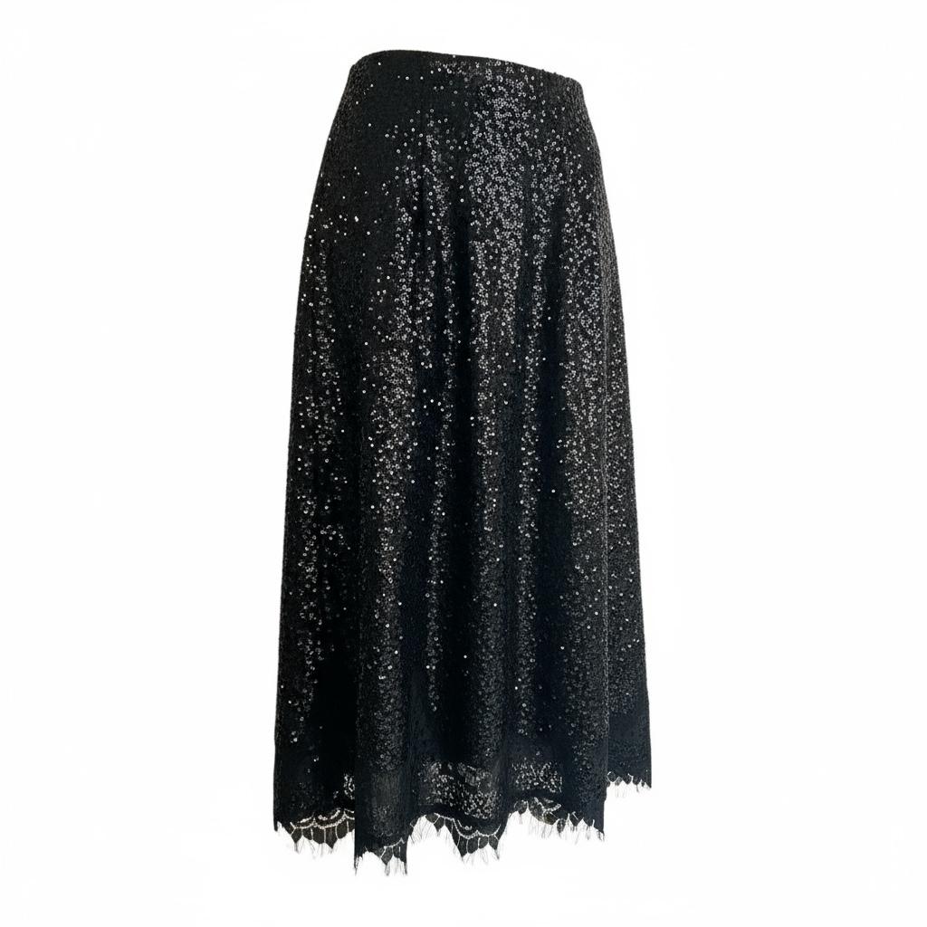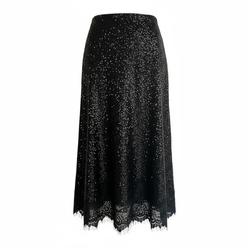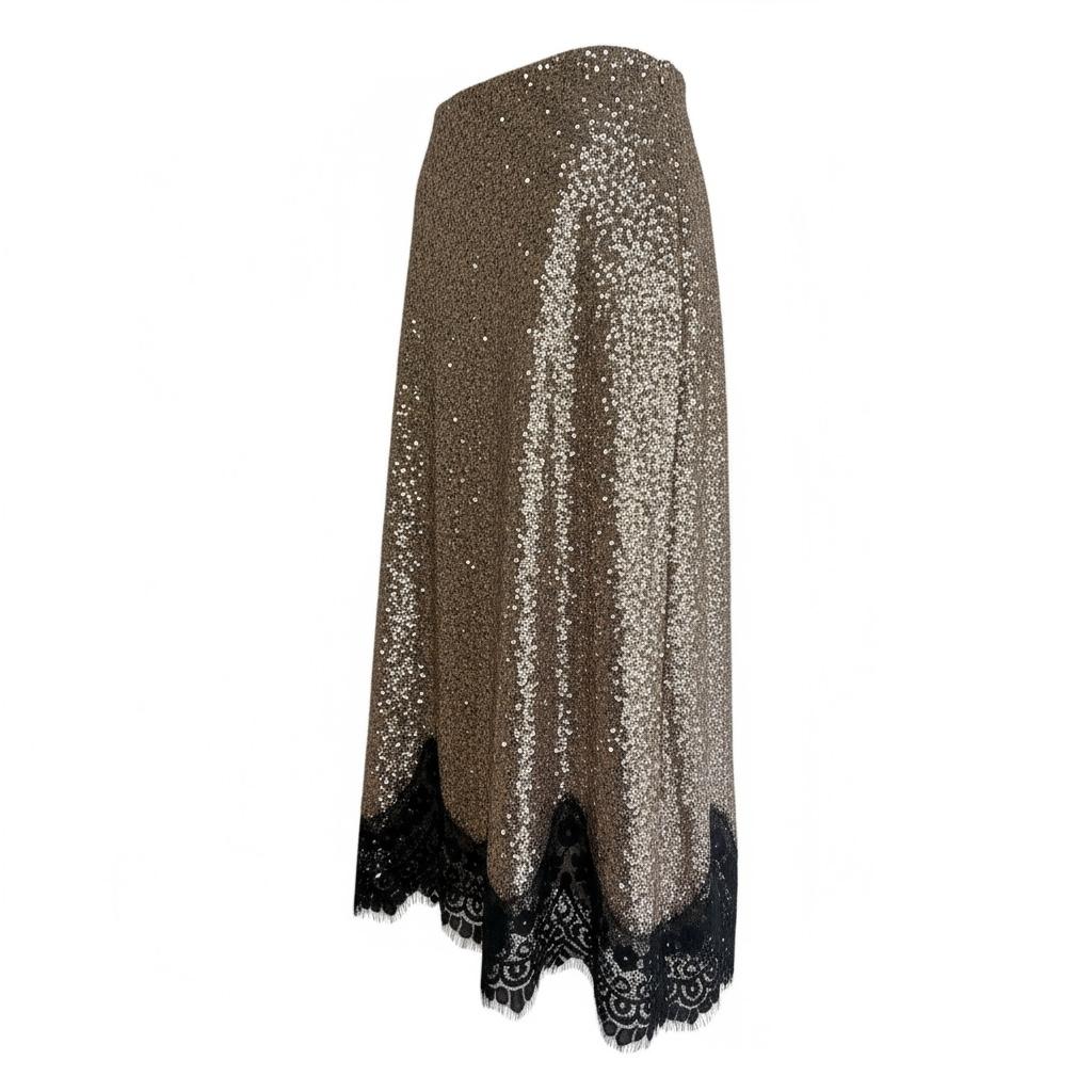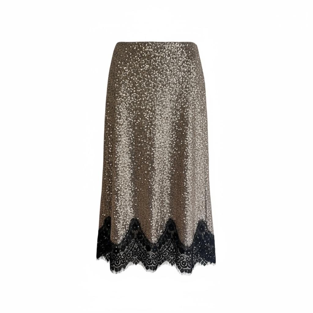 Brillez avec élégance grâce à cette jupe à paillettes, sublimé par une délicate bordure en dentelle.