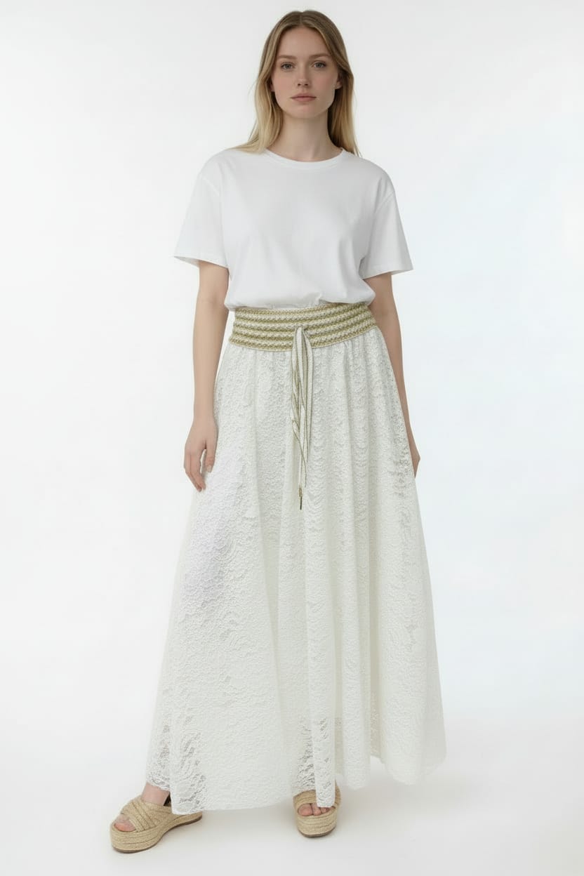Élégante, féminine et résolument moderne, cette jupe longue en dentelle écrue est une pièce incontournable du dressing féminin. Avec sa coupe fluide et son tombé aérien, elle sublime la silhouette tout en offrant un confort absolu au quotidien. Son design délicat en dentelle apporte une touche romantique et raffinée, idéale aussi bien pour une tenue décontractée chic que pour une occasion plus habillée.