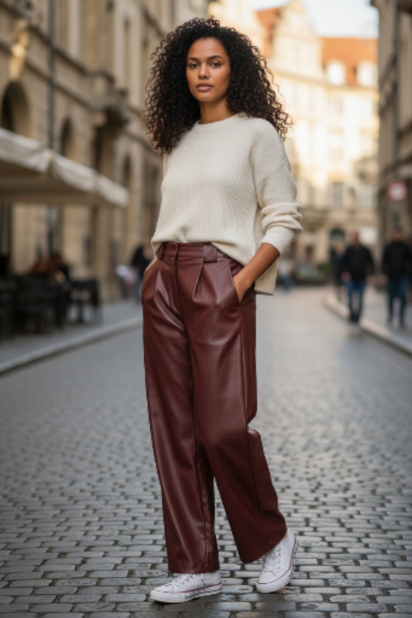 Un pantalon en similicuir à la coupe ample, chic et ultra-confortable.