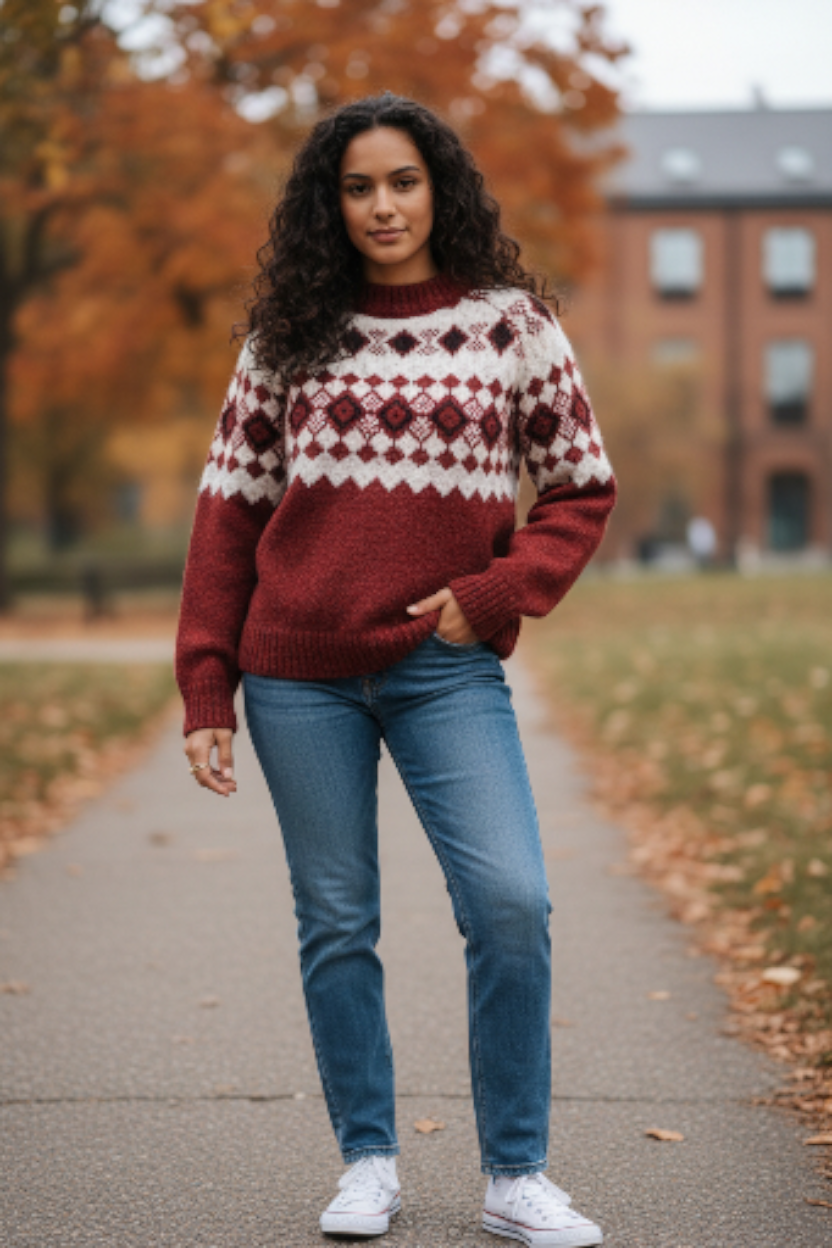 Ce pull jacquard au design raffiné allie confort et élégance. Une pièce intemporelle pour affronter le froid avec style.