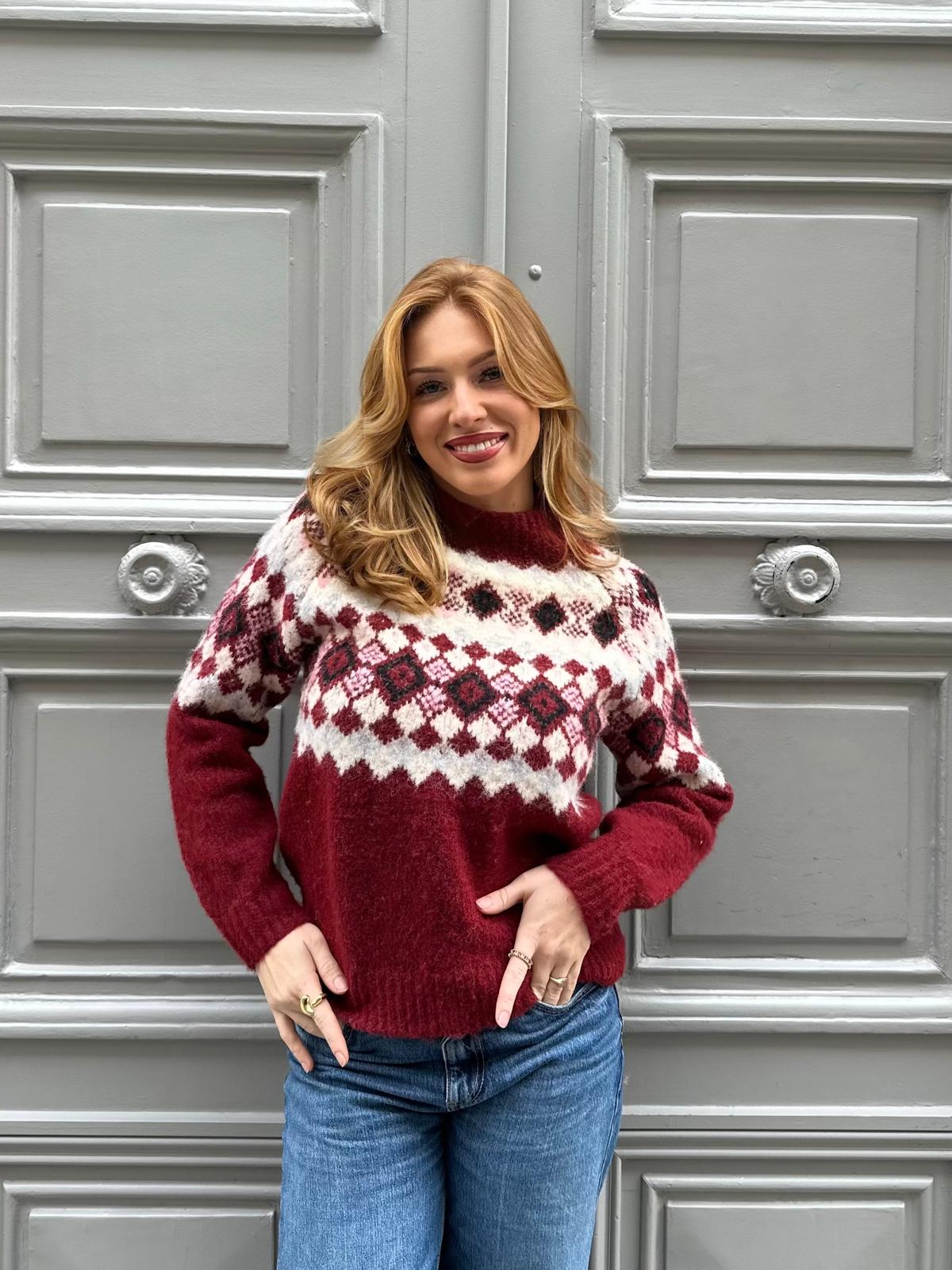 Ce pull jacquard au design raffiné allie confort et élégance. Une pièce intemporelle pour affronter le froid avec style.