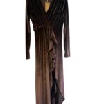 Sublime et audacieuse, cette longue robe marron joue avec la transparence aux bras et aux genoux pour un look élégant et moderne.