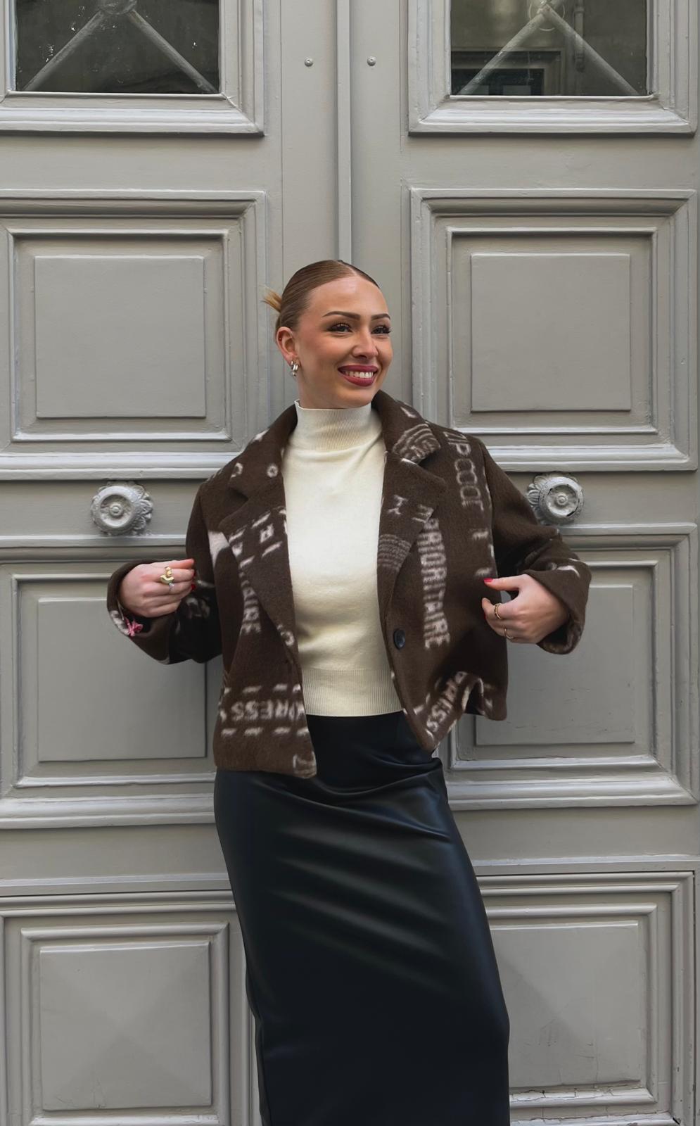 Adoptez un style unique avec cette veste courte marron à motifs. Une pièce moderne qui rehausse instantanément votre tenue.