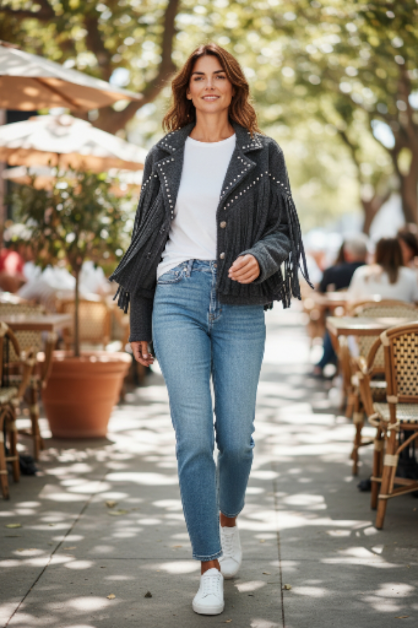 Adoptez un style unique avec cette veste courte noir à motifs. Une pièce moderne qui rehausse instantanément votre tenue.