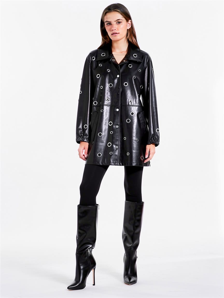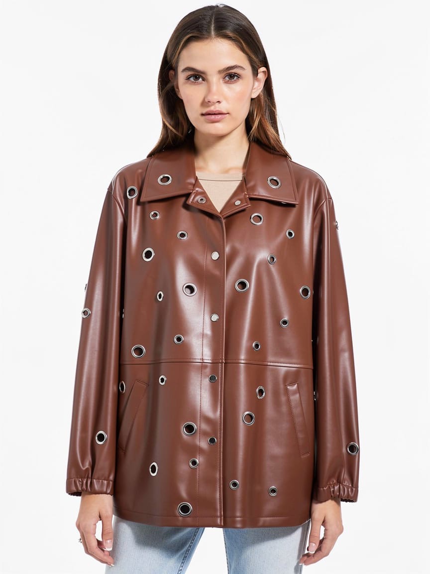 Veste en similicuir à œillets