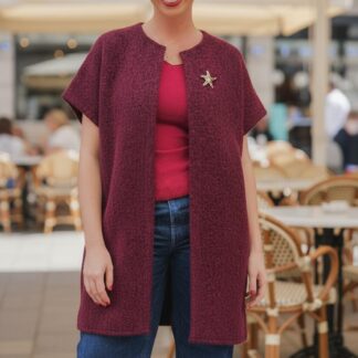 Élégante et fluide, cette veste longue sans manches sublime la silhouette. Une pièce intemporelle pour un look chic et sophistiqué.